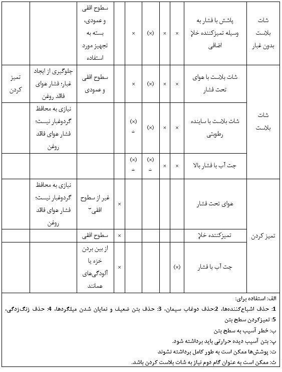 بسته به شرایط مرزی، مراحل زیر برای آمادهسازی سطح بتن انجام میگیرند: